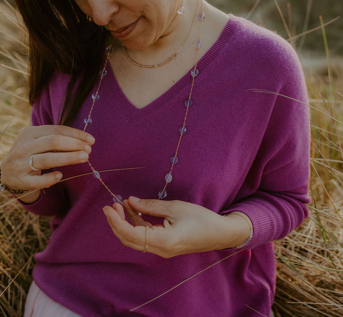 ⫸ Handmade long necklace with healing gemstones.